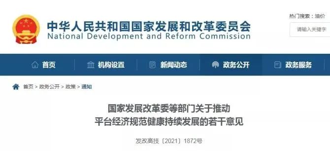 近年来,国家层面先后出台了指导、规范平台经济发展的多份文件,既有整体角度的鼓励性文件,国务院办公厅《关于促进平台经济规范健康发展的指导意见》,中央网信办等九部门联合发布的《关于加强互联网信息服务算法综合治理的指导意见》、人社部等八部门联合发布的《关于维护新就业形态劳动者劳动保障权益的指导意见》,国家发展改革委等九部门新发布的《关于推动平台经济规范健康持续发展的若干意见》,则具有“集大成者”的属性,并从新的经济形势与战略高度,提出了平台经济发展趋势及应对策略。